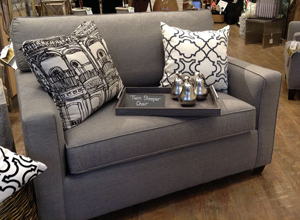 Upholstered furniture pieces that you can either take home right away or have custom-ordered to suit whatever fabric or tailored design you desire. Pictured above is a twin sleeper chair.